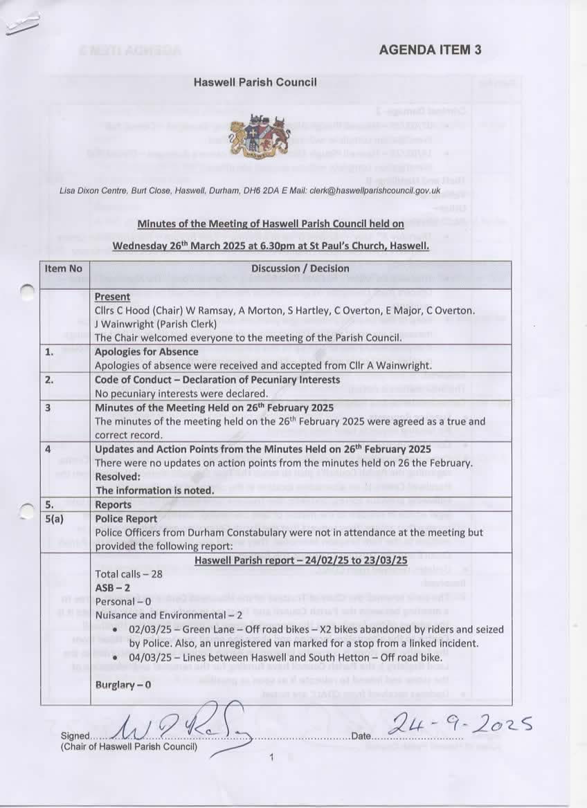 MINUTES: March 2025 Add to Calendar Next: 22nd May 2025 → Documents 26 March 2025 26 March 2025 2 26 March 2025 3 26 March 2025 4 26 March 2025 5 Committees Events Working Group View all Meetings Popular Links When is the next council meeting?