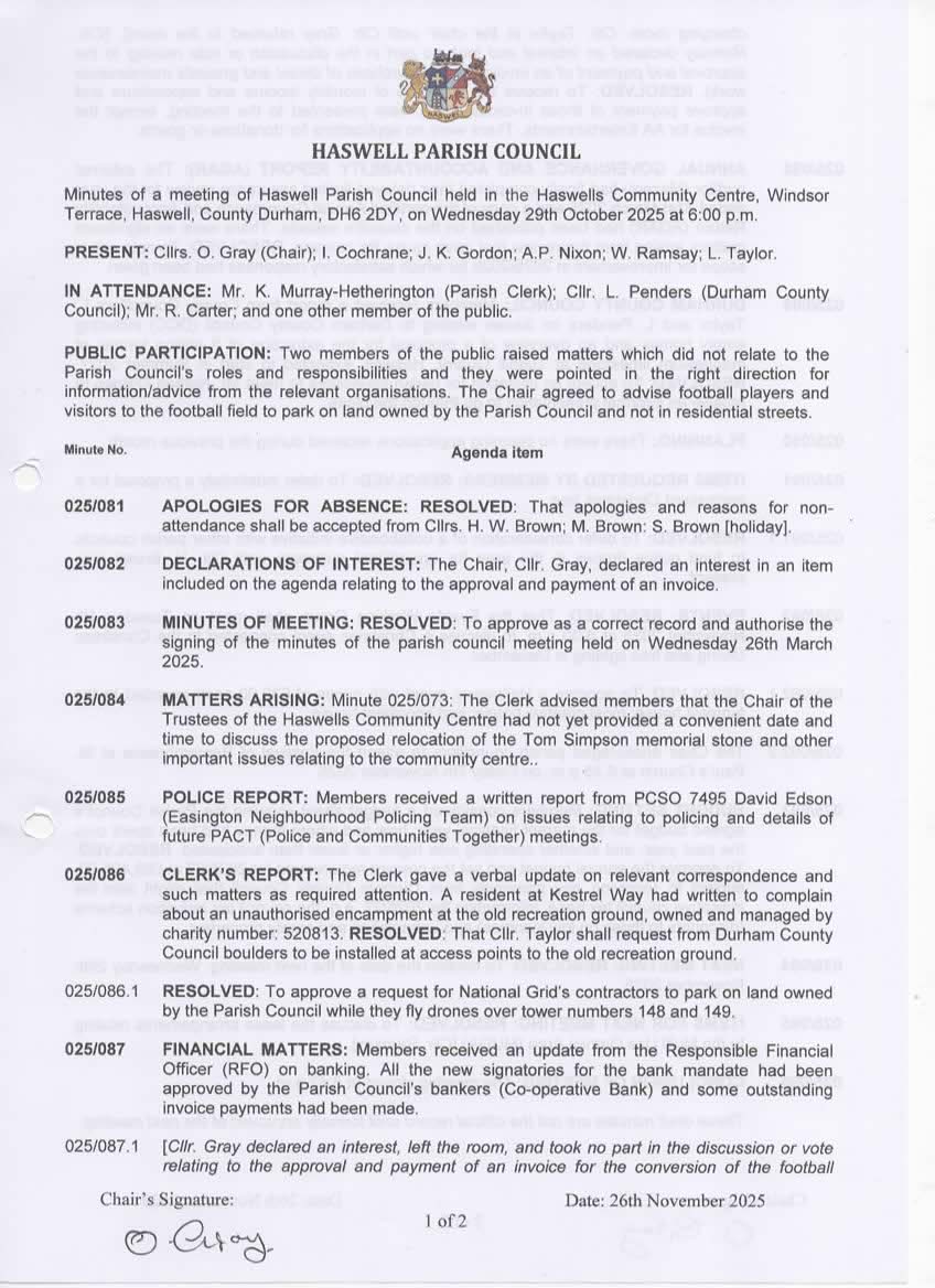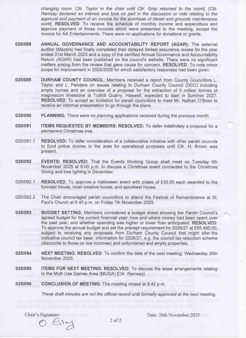 MINUTES: October 2025 Add to Calendar ← Previous: 24th September 2025 Next: 26th November 2025 → Documents 29 Oct 2025 29 Oct 2025 2 Committees Events Working Group View all Meetings Popular Links When is the next council meeting?